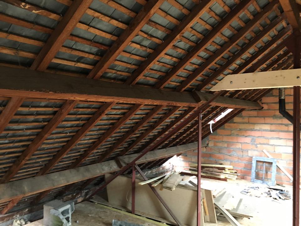 Changement de couverture en ardoise naturelle 1er choix et aménagement des combles à venir. STC Rénover c’est notre métier !